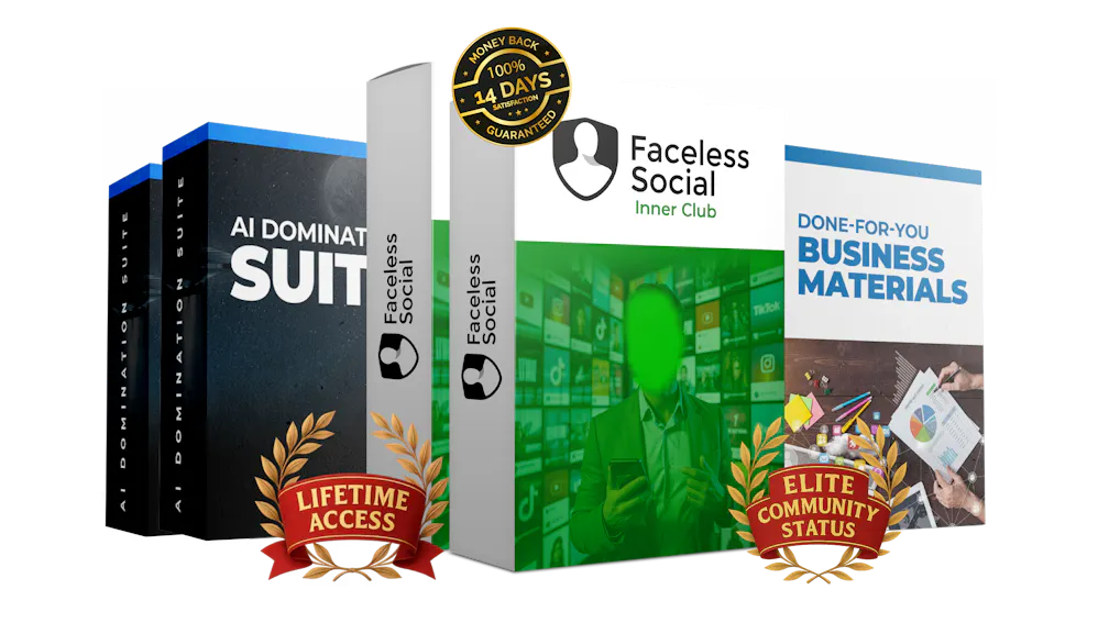 The Inner club is our elite membership tier that includes lifetime access to all training materials, elite community status, the complete Faceless Social As A Service business system, and the 7-part AI Domination Suite. It's designed for serious business owners who want to not only use faceless social systems but also make money by offering specialized AI solutions to clients.